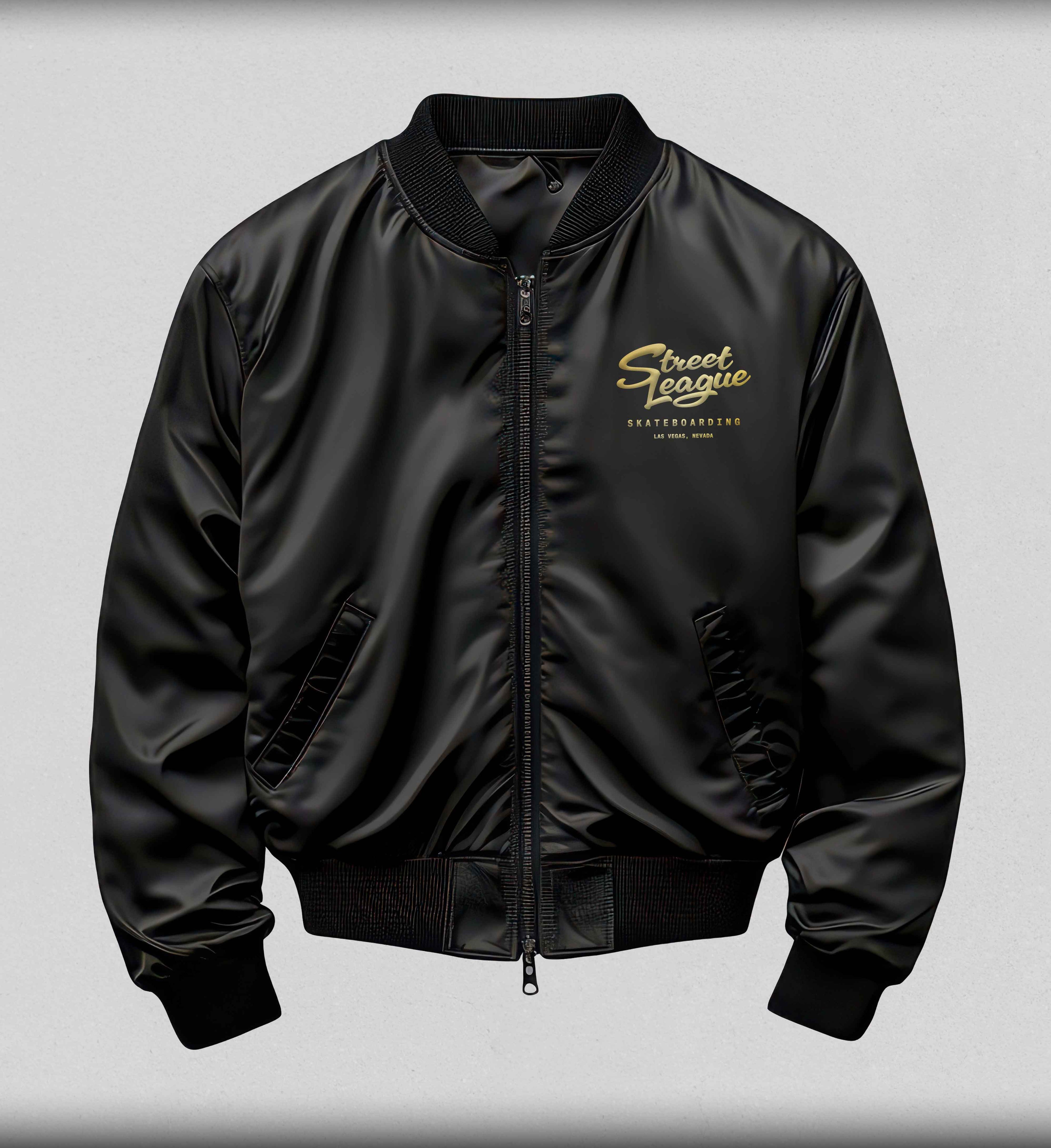 Clean, classic, and built to flex without trying. The SLS Vegas Bomber drops that satin-black finish with gold hits t...
